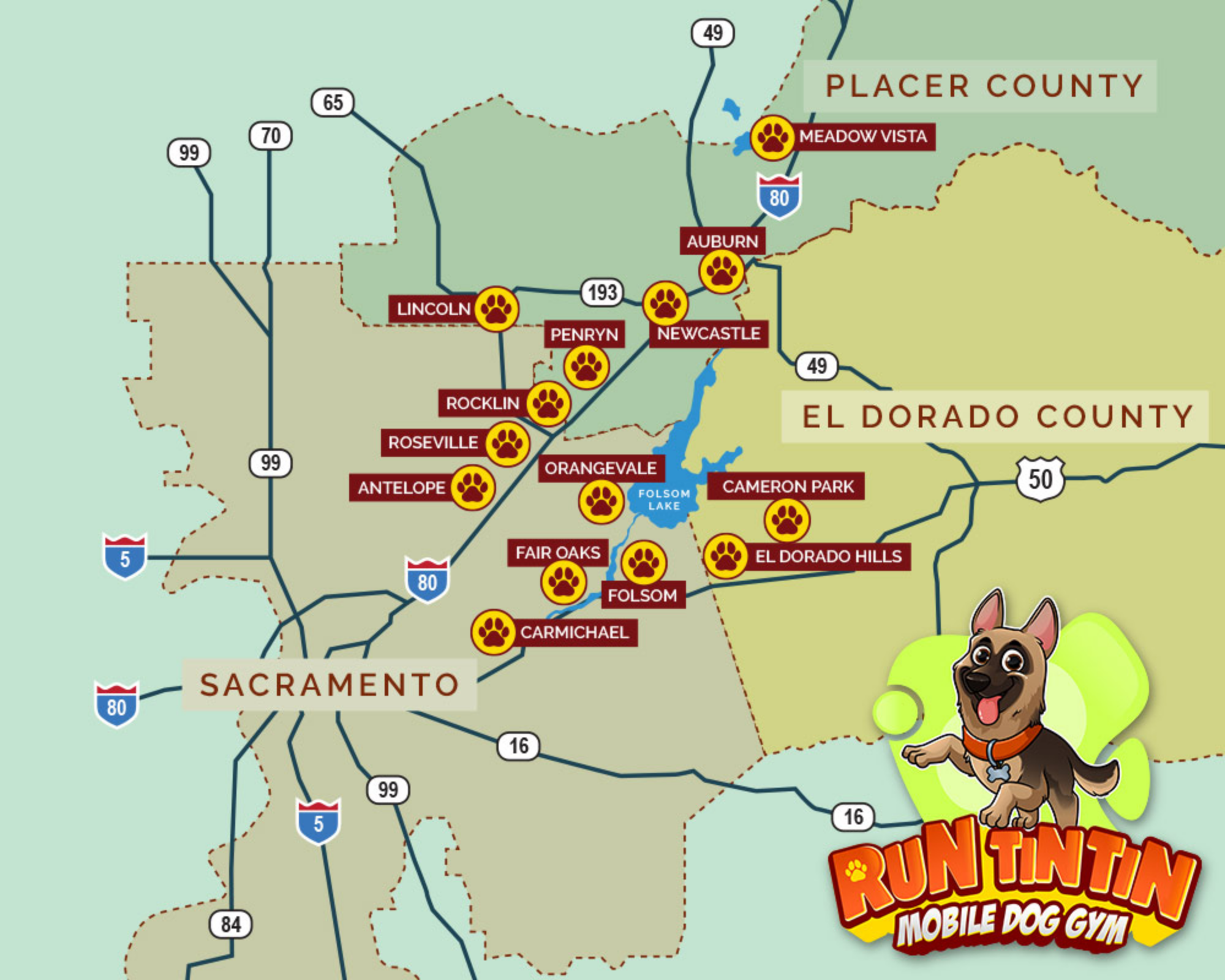 RunTinTin is a mobile service. That means we work where you are. If you’re slightly outside these zones, reach out. We may be able to include you on route extension days.
